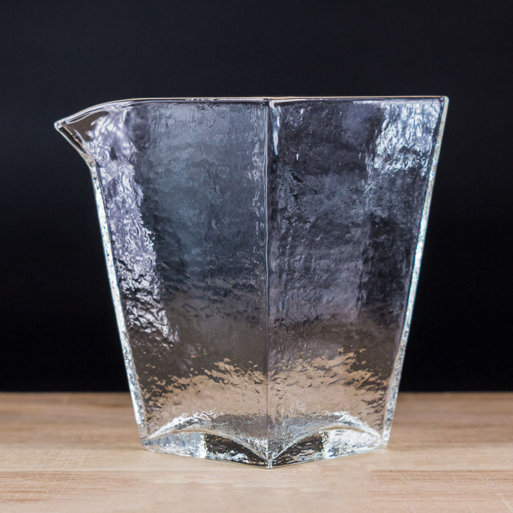 Cha Hai ("Gong Dao Bei") made of heat-resistant hummered glass. Interesting shape, embossed surface.